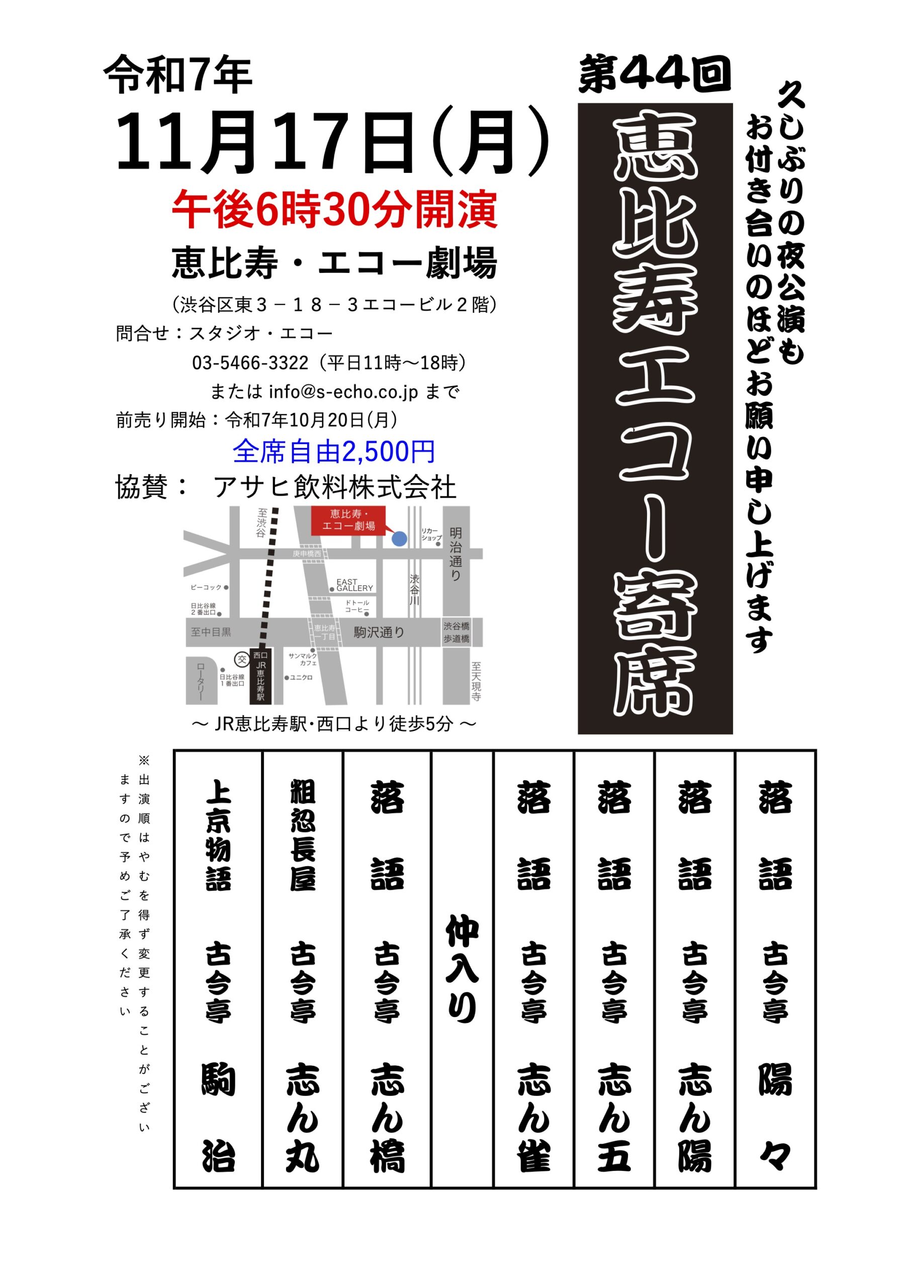 スタジオ・エコー(03-5466-3322)までお電話ください。